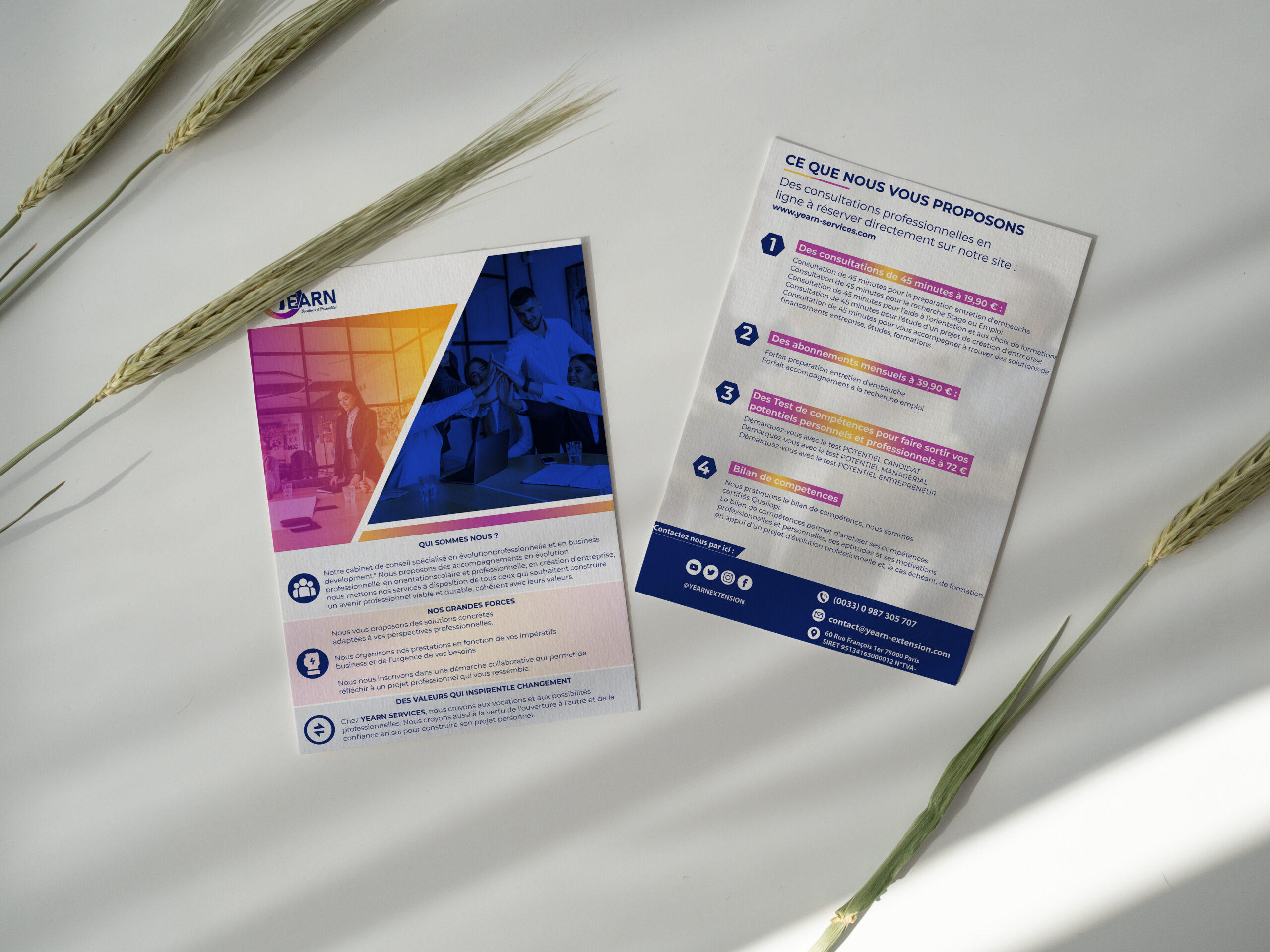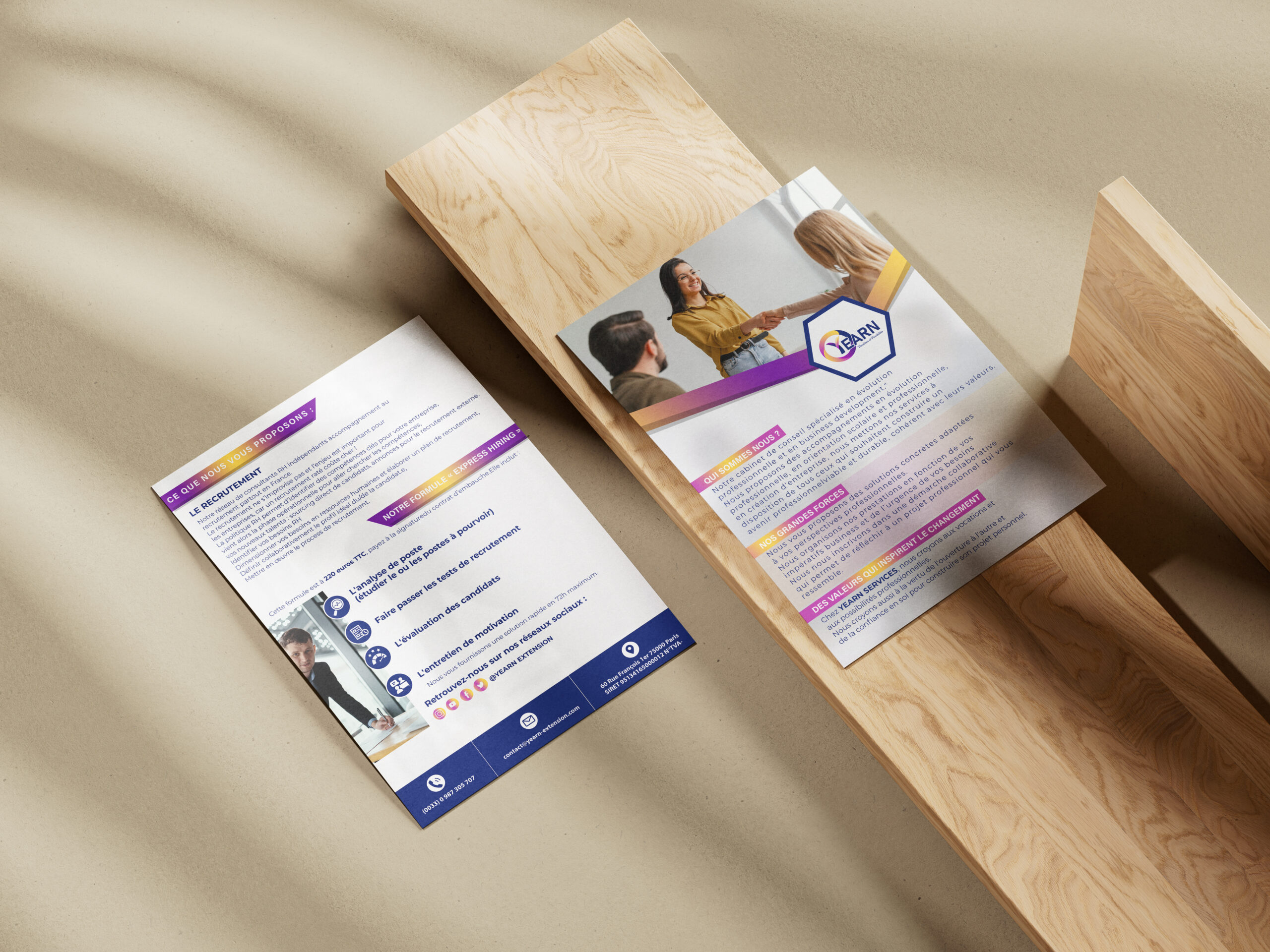 • Pack Office : adaptation de votre identité visuelle sur des outils comme les modèles Word, PowerPoint, cartes de visite, papeterie, etc.