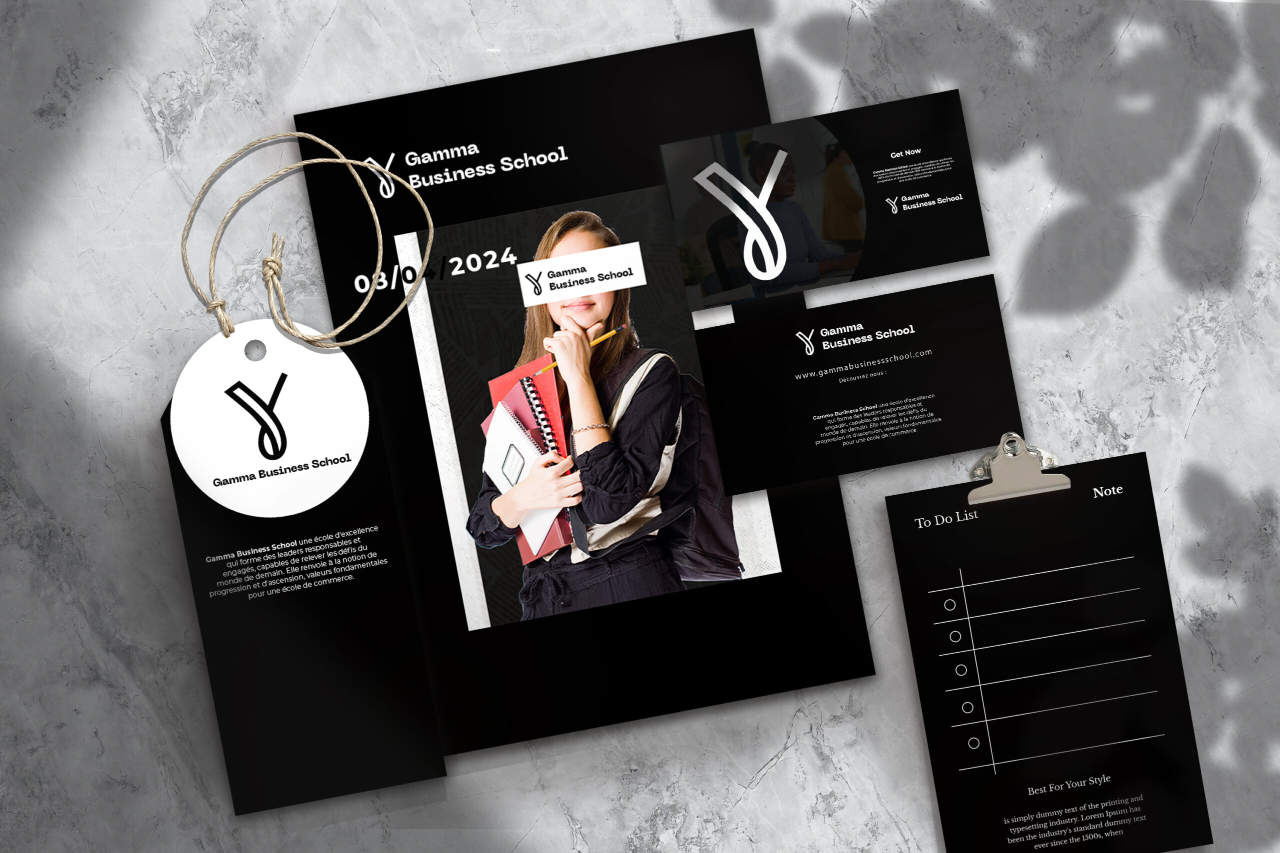 C'est l'identité visuelle de l'école de commerce, centrée sur la lettre gamma, symbolise la progression, l'ascension et l'ambition, valeurs essentielles pour former des leaders solides et équilibrés, prêts à réussir dans un marché globalisé, tout en reflétant son engagement pédagogique envers une éducation complète et harmonieuse.